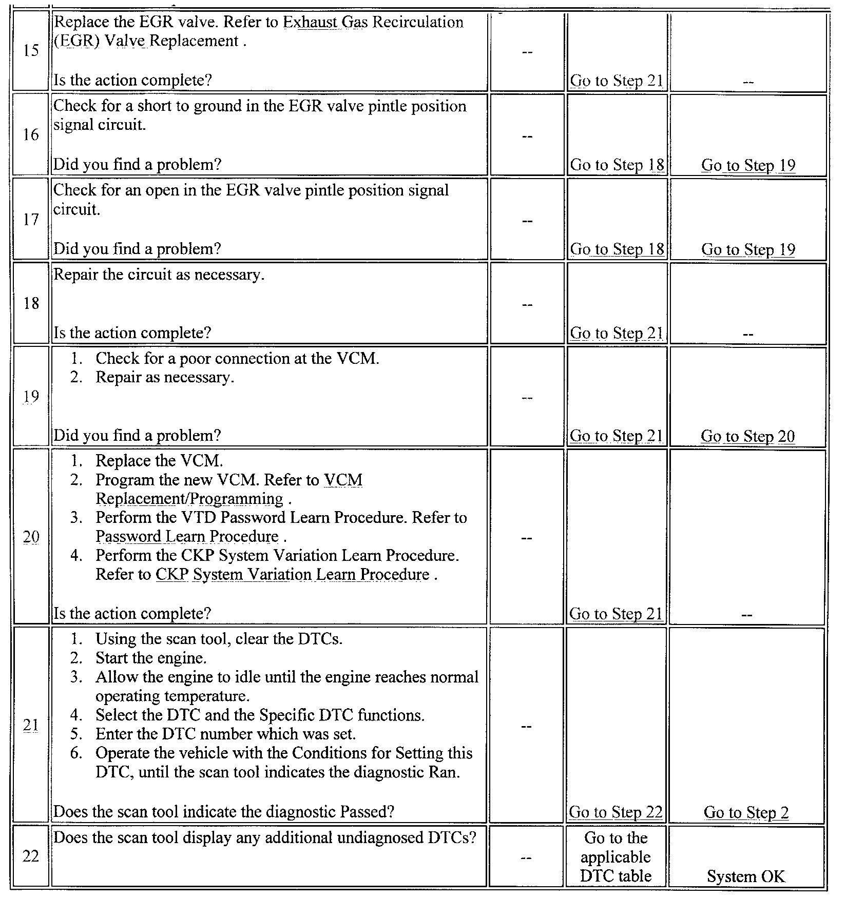 21. Clearing the DTCs is a very important step for this diagnostic. The clearing function allows the EGR valve to relearn a new minimum pintle position.