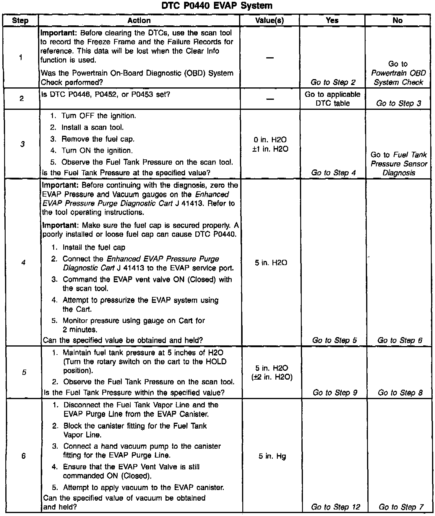 Any of the above conditions can set a DTC P0440.