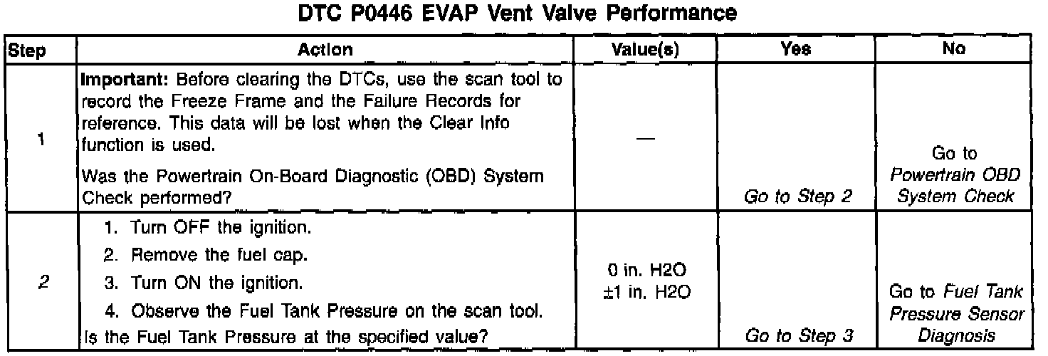 2. This step checks the Fuel Tank Pressure sensor at atmospheric pressure.