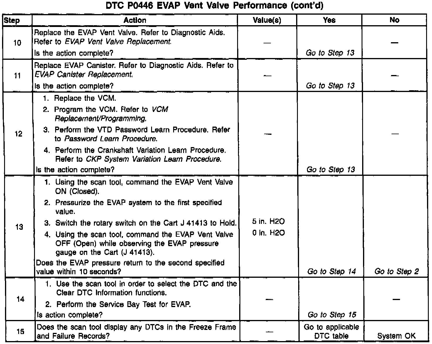 The VCM monitors the performance of the EVAP system by applying a predetermined level of vacuum to the EVAP system and monitors the vacuum decay rate. The VCM sets this DTC if the vacuum decay rate is greater than a predetermined value.