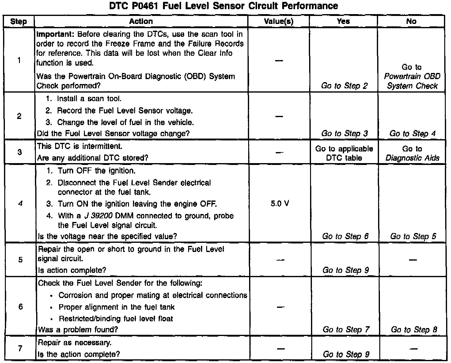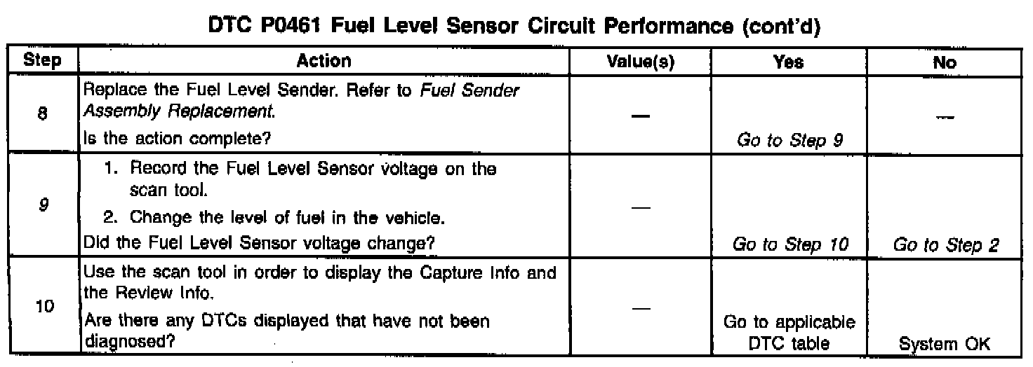 9. This step determines if the fuel level sender is operating correctly.