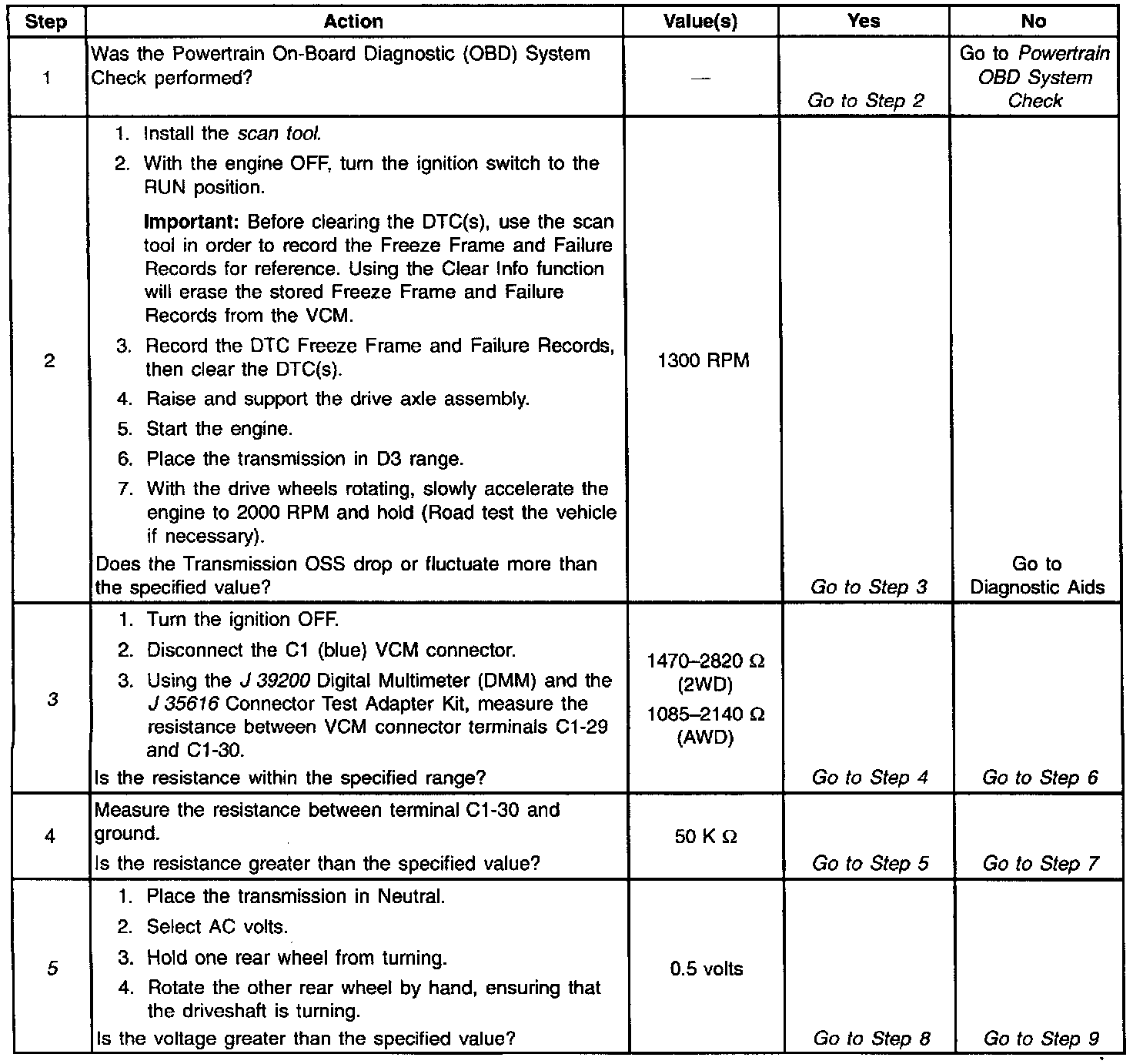 ^ The transmission output speed drops by greater than 1300 RPM for 3 seconds when not in Park/Neutral.