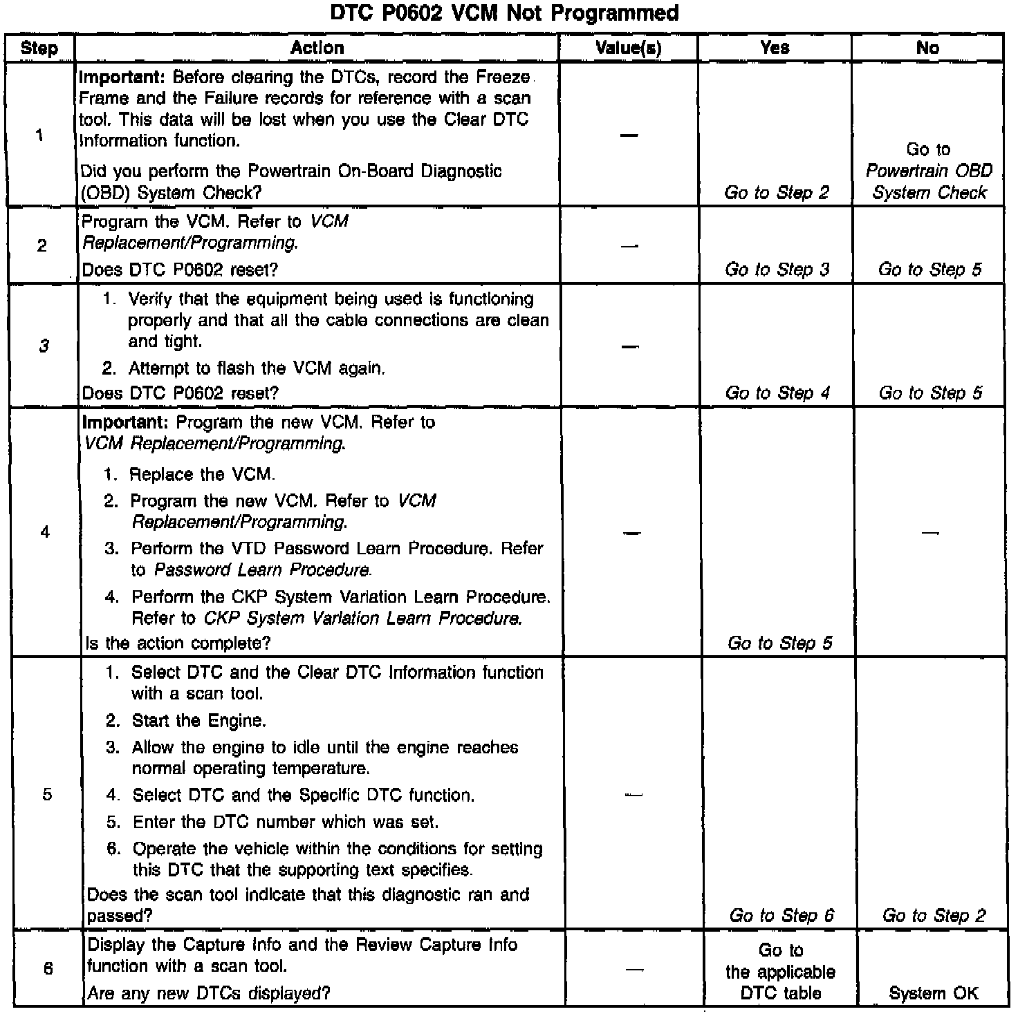 ^ The VCM records the operating conditions at the time the diagnostic fails. The VCM stores this information in the scan tools Freeze Frame and/or the Failure Records.