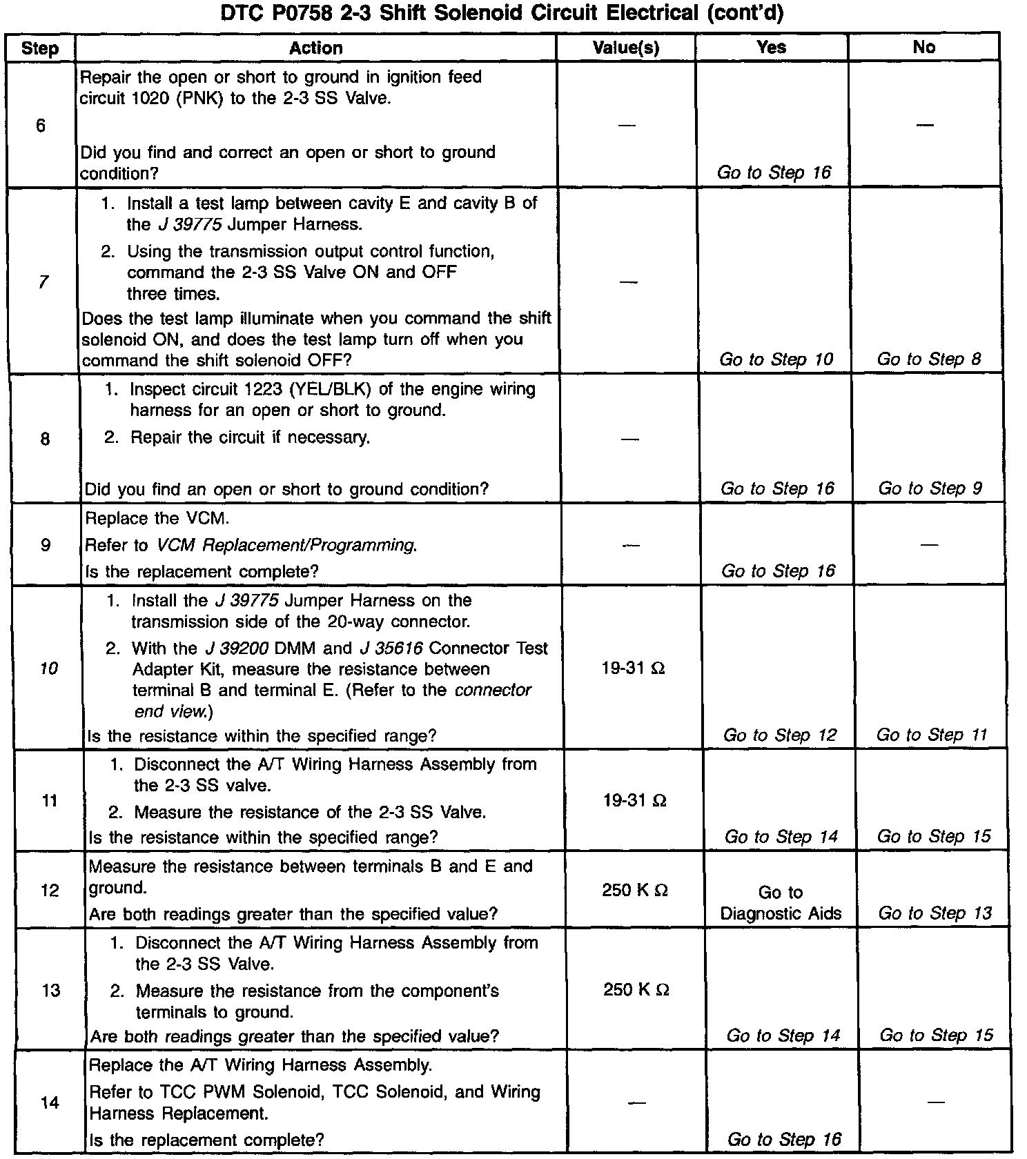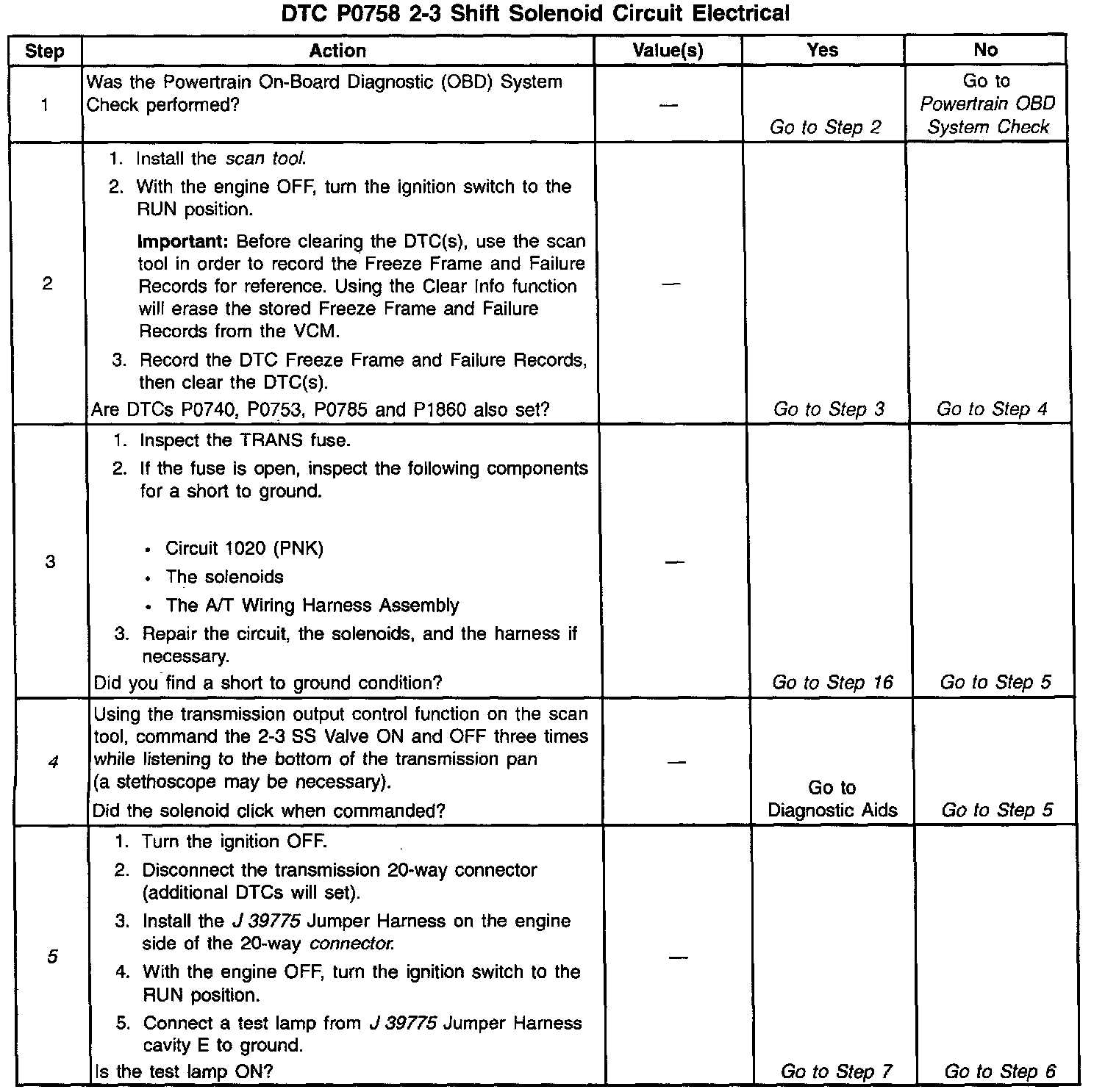 When the VCM detects a continuous open or short to ground in the 2-3 SS Valve circuit or the 2-3 SS Valve, then DTC P0758 sets. DTC P0758 is a type A DTC.