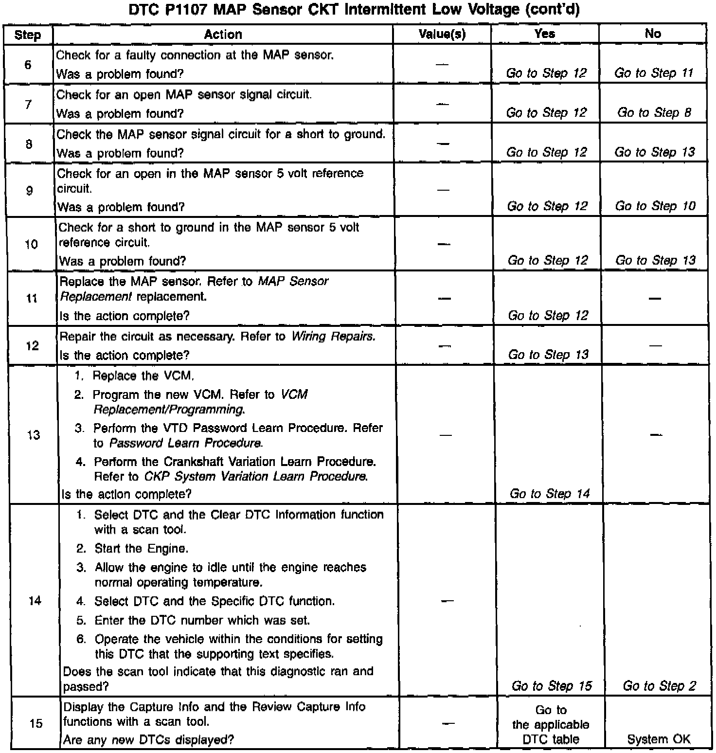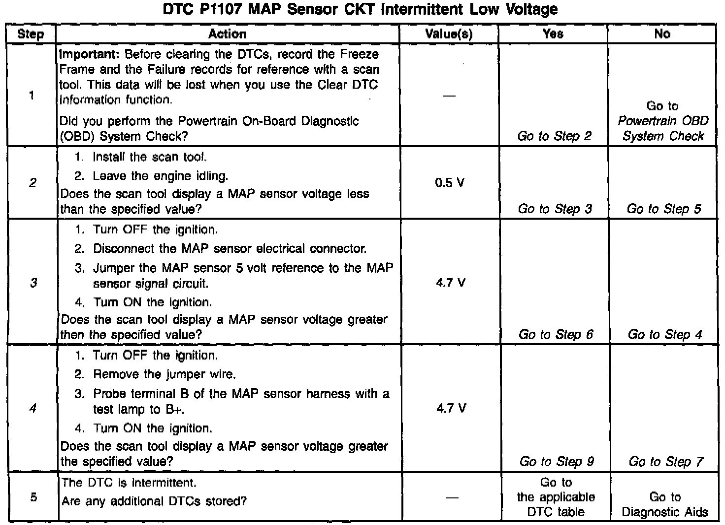 An intermittent open in the MAP sensor signal circuit or the 5 volt reference circuit will result in a DTC P1107.