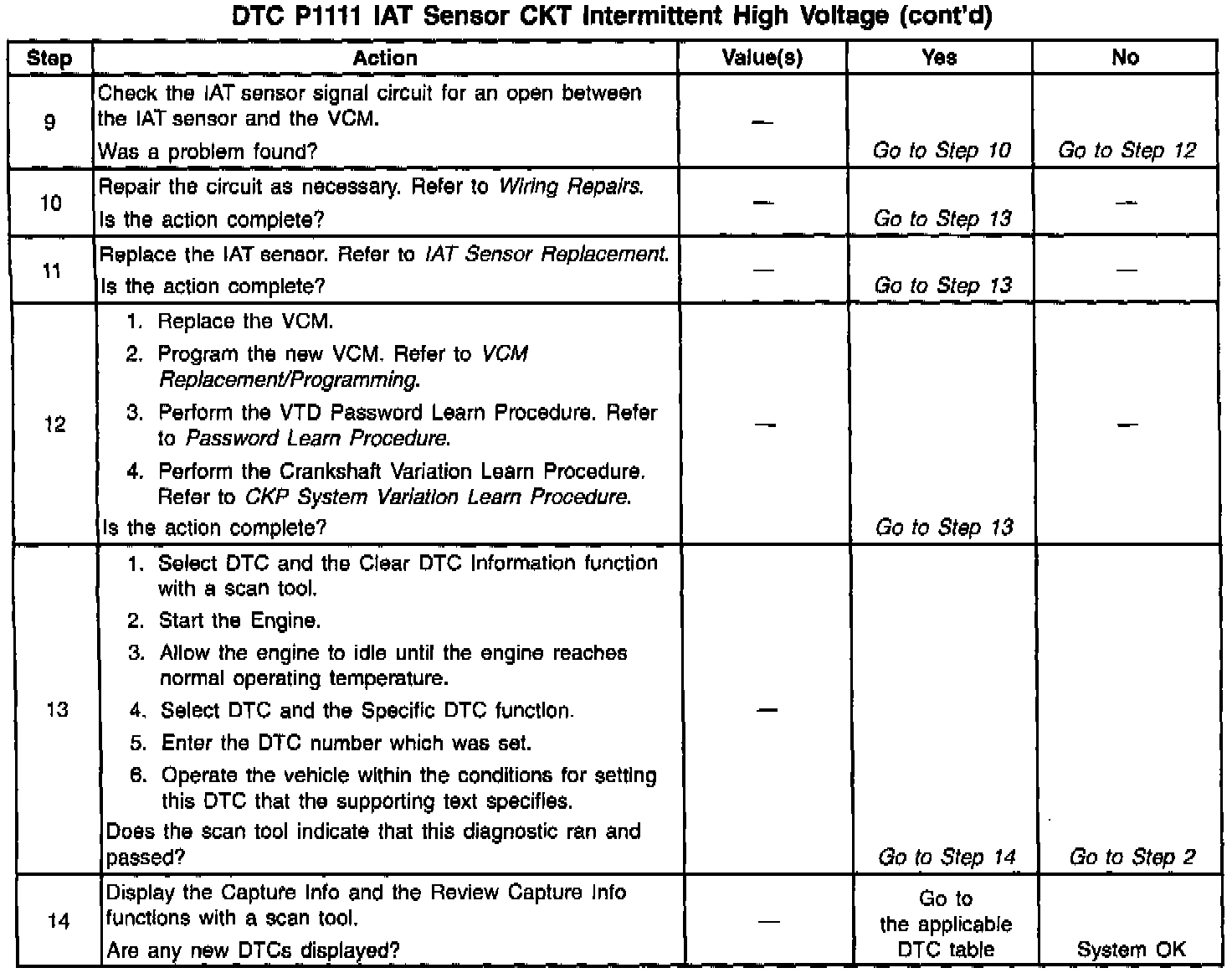 The numbers below refer to the step numbers on the diagnostic table.
