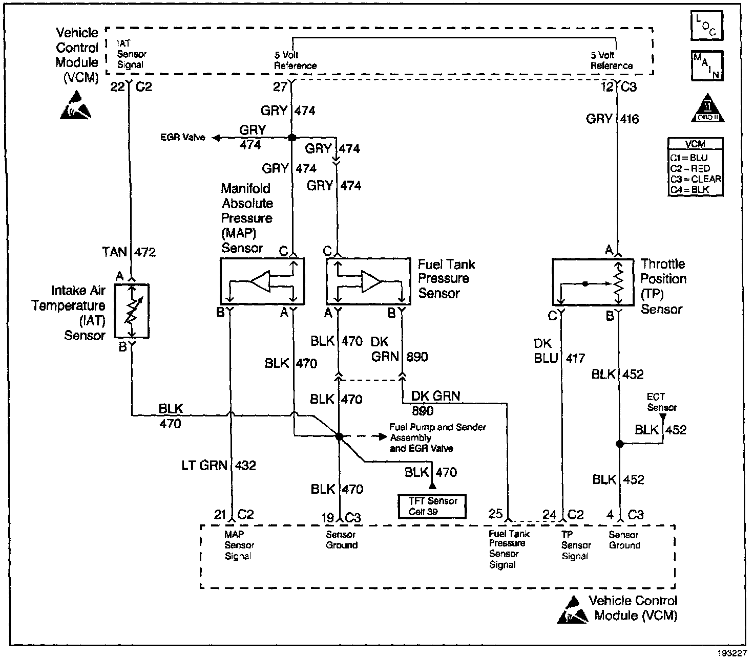 3. This test will bypass the IAT sensor and will confirm that the IAT signal circuit and the sensor ground circuit to the VCM are sound. Grounding the signal circuit will provide a low voltage input to the VCM. The VCM should recognize this low voltage and indicate a high IAT temperature.