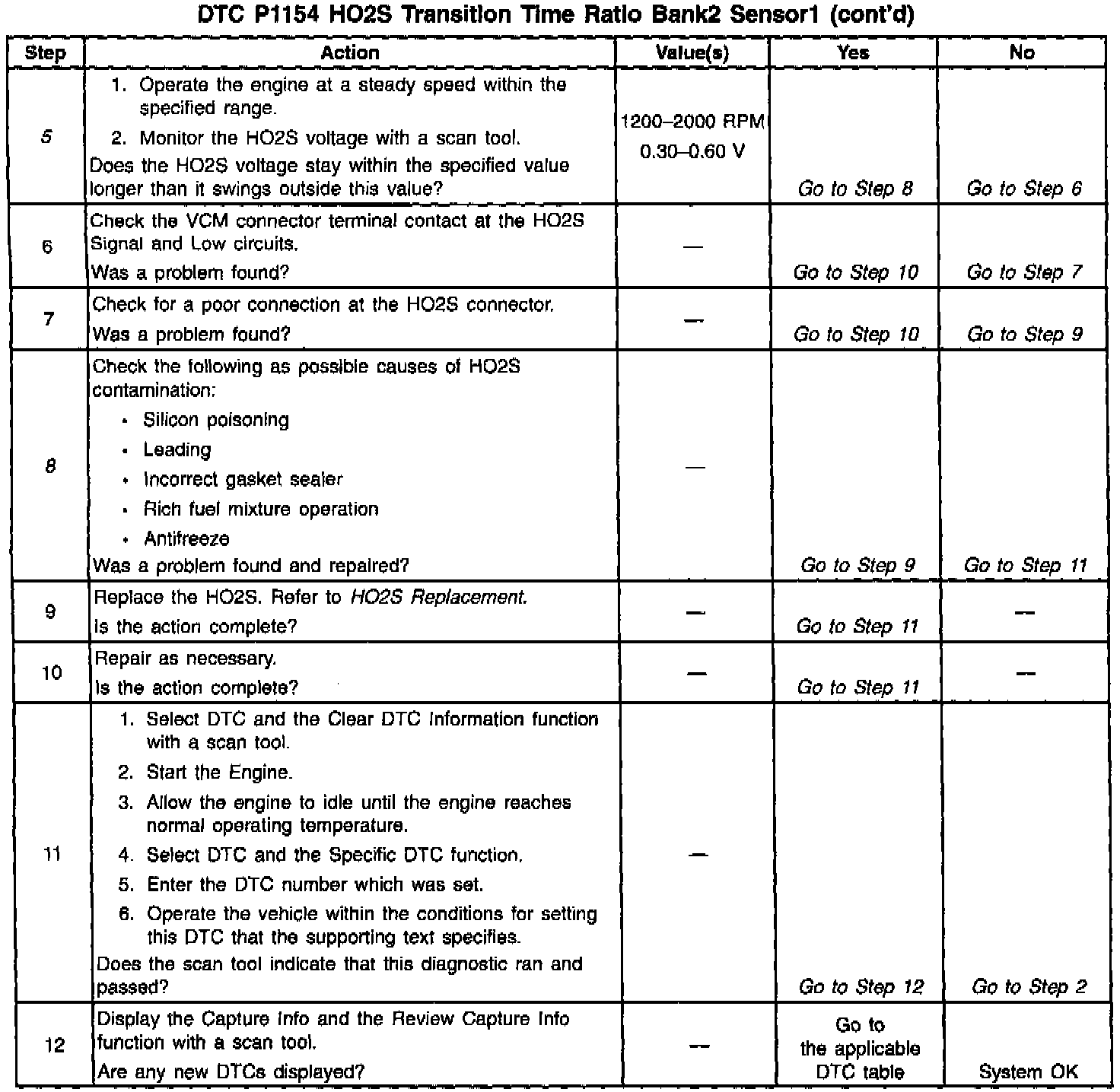 5. This step checks to see if the Oxygen sensor voltage is swinging between rich and lean very slowly or not at all.