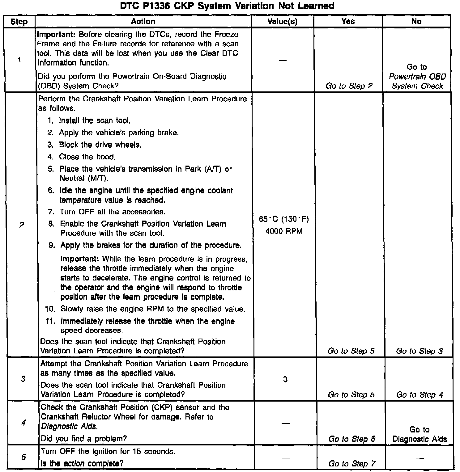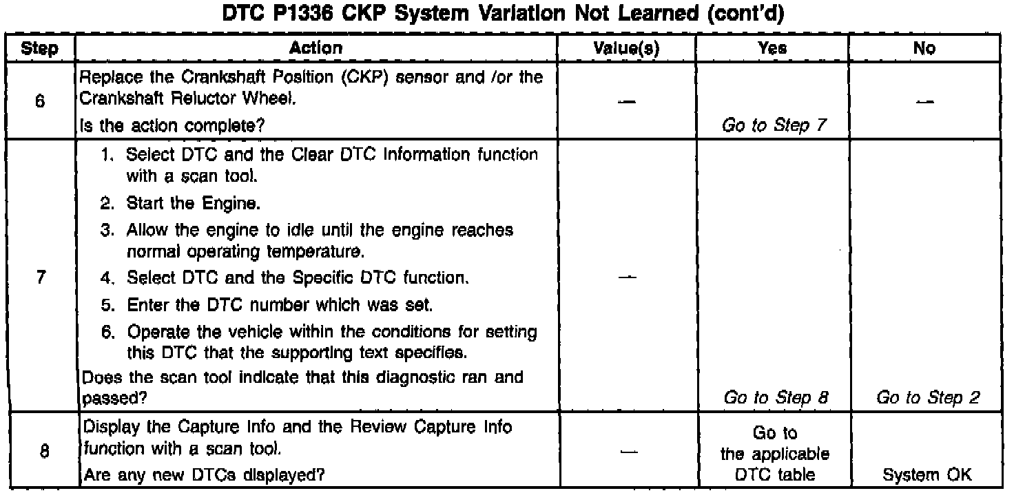If the Crankshaft Position System Variation is not within an acceptable range, or can not be learned, DTC P1336 sets.