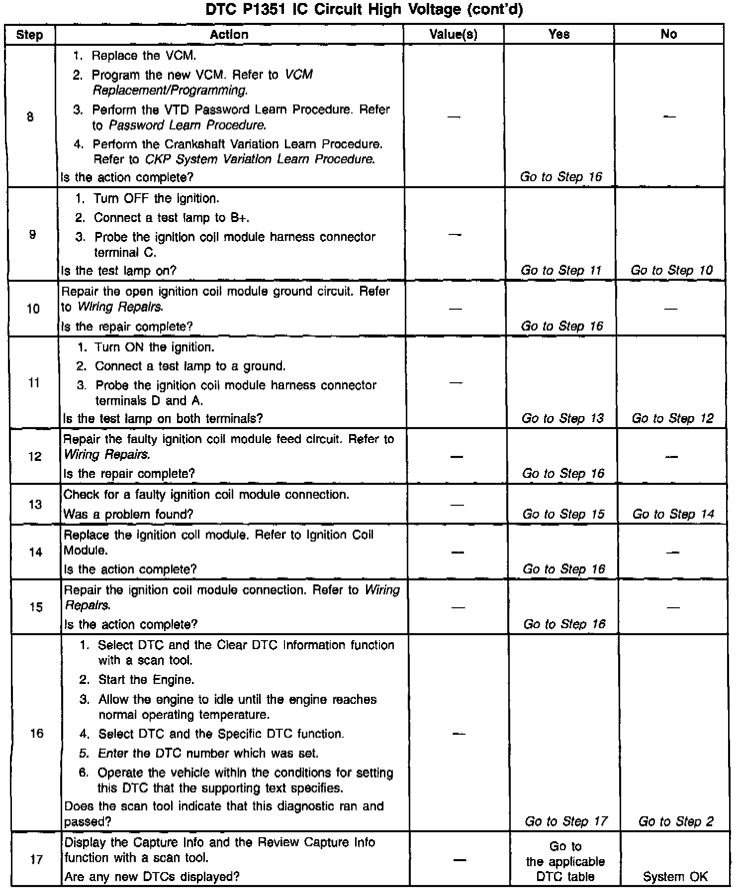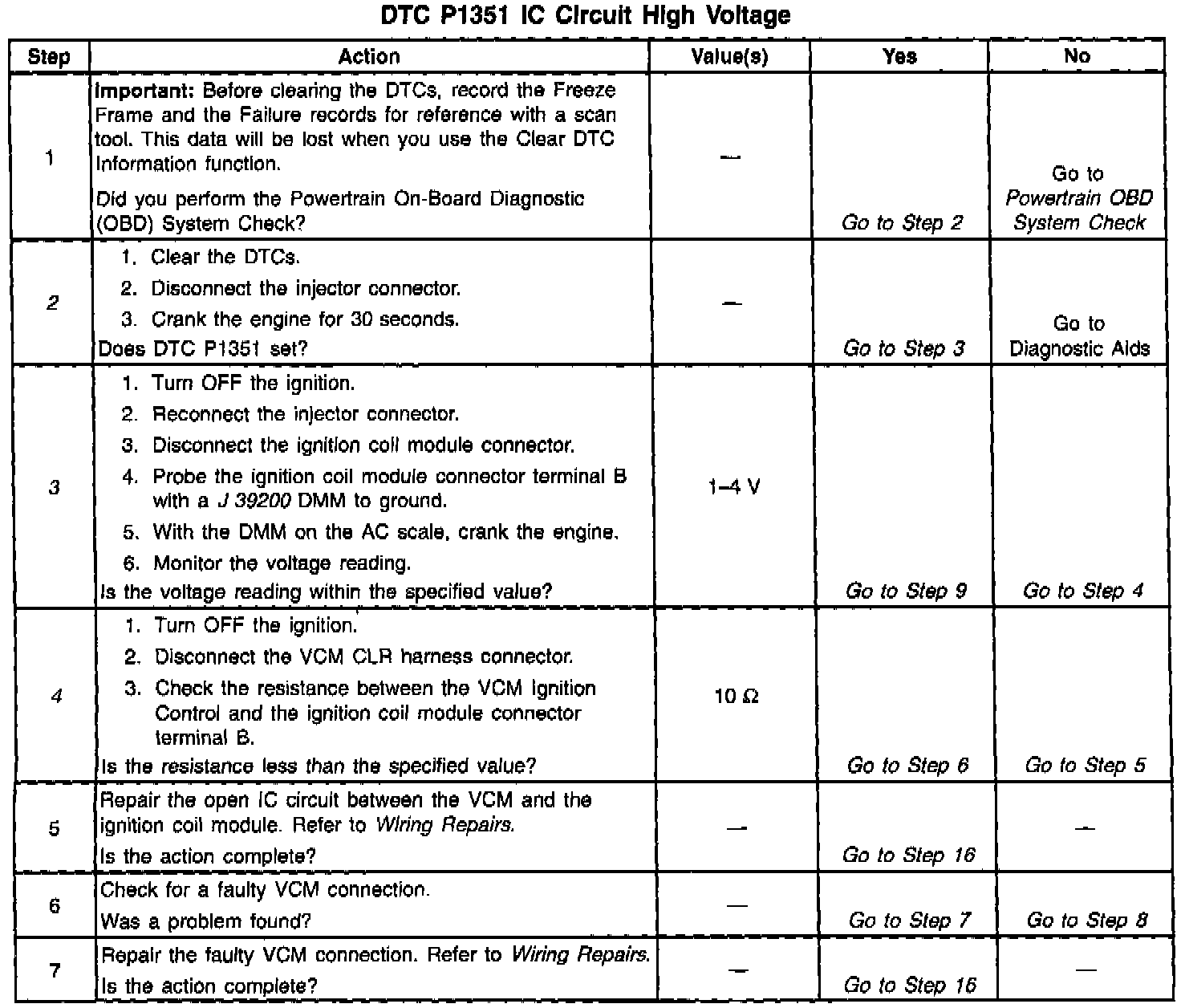 The numbers below refer to the step numbers in the diagnostic table.
