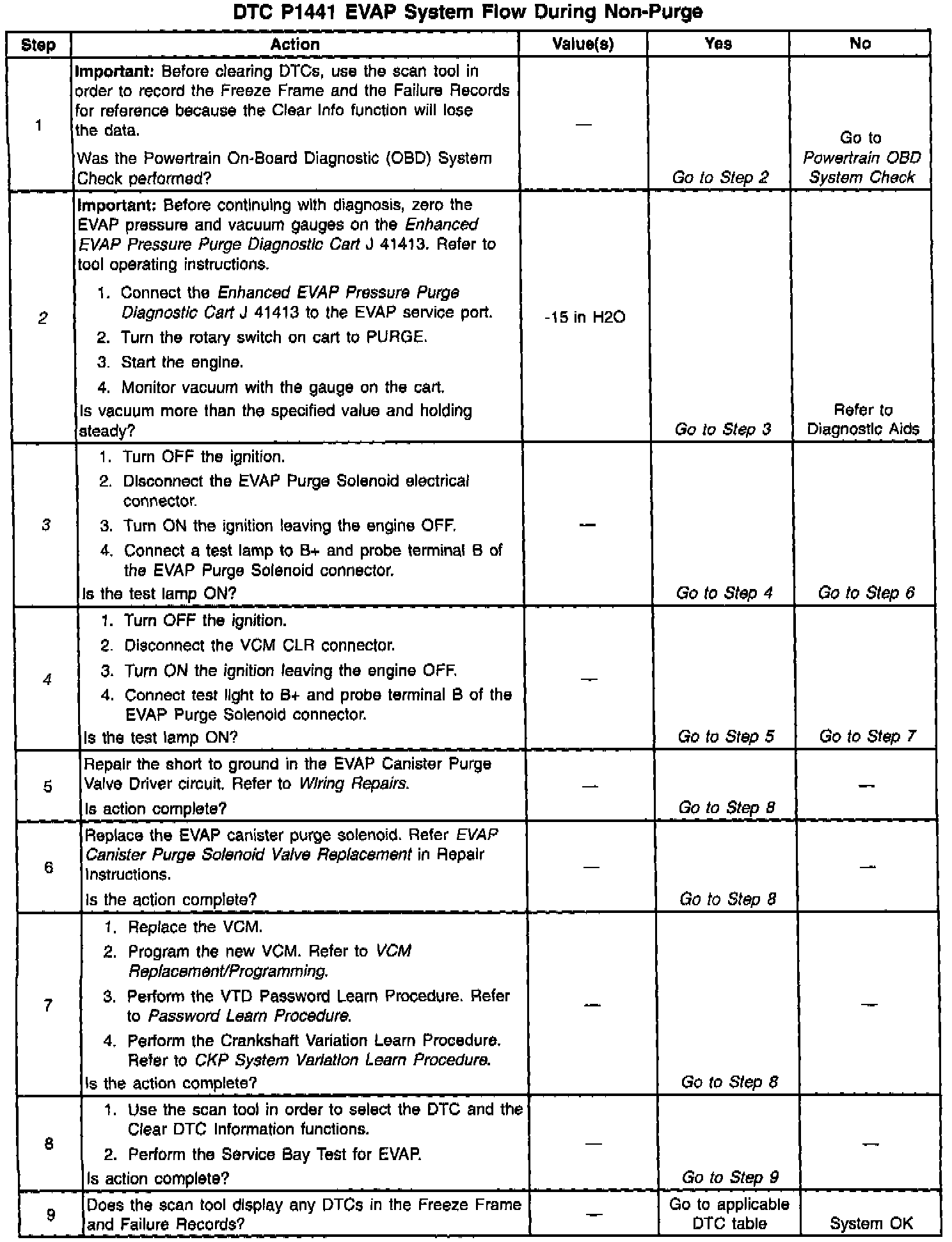 If any of these conditions are present, a DTC P1441 sets.
