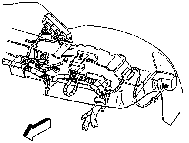 13. Remove the nuts and bolts that retain the instrument panel steering column reinforcement bracket to the instrument panel carrier.