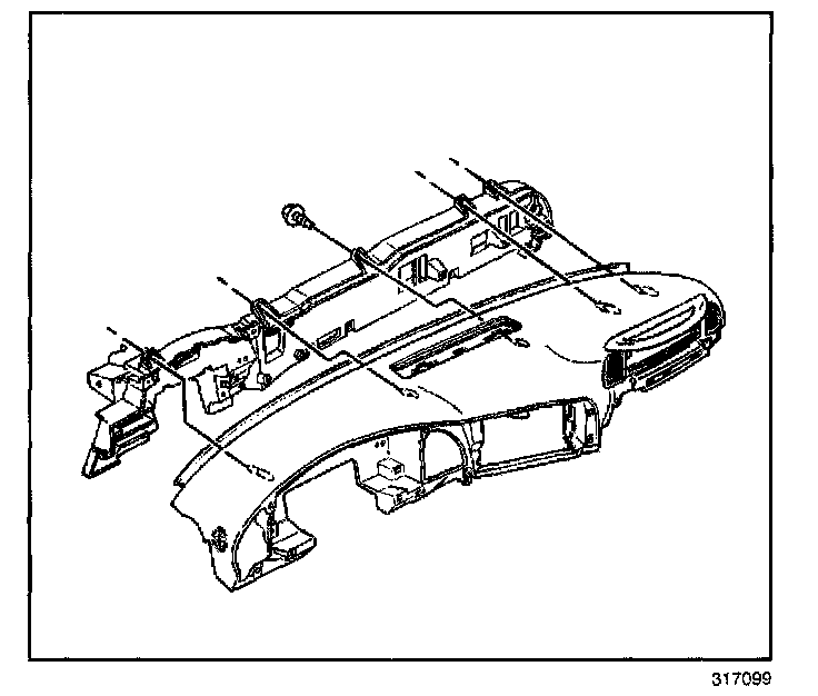 9. Remove the screws that retain the trim pad to the instrument panel carrier.