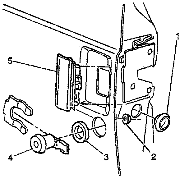 10. Remove the lock cylinder and the gasket (5) from the door.