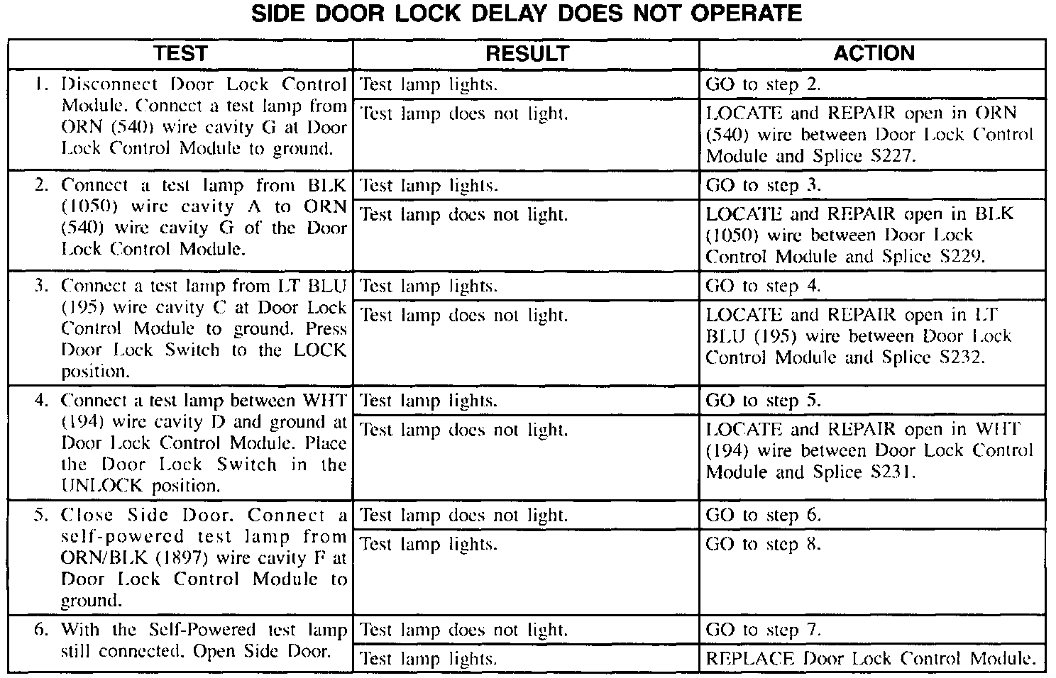 Side Door Delay Does Not Operate (Part 2 Of 2):