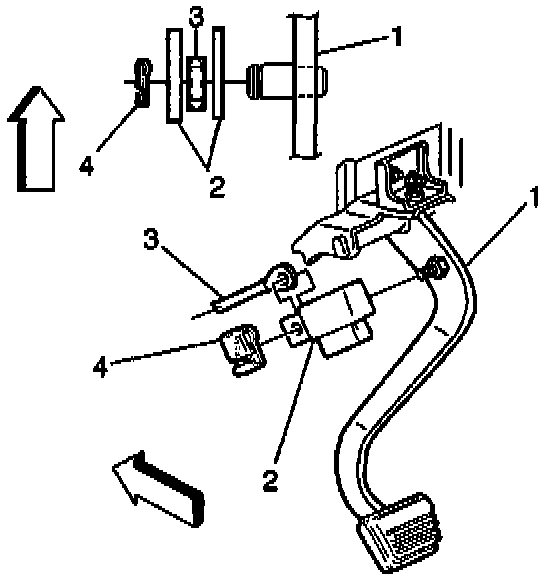 4. Remove the brake pedal (1), spacers and bushings from the vehicle.