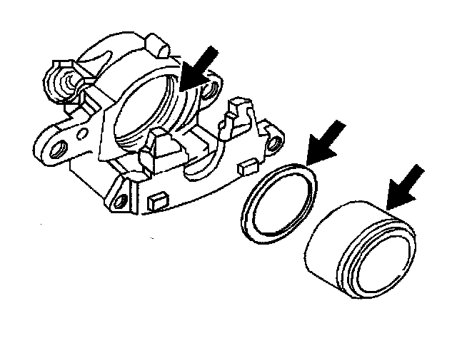 6. Remove the piston seal from the caliper bore. Do not use a metal tool.