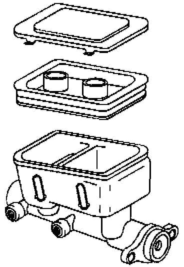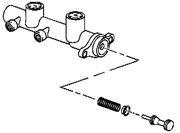 DISASSEMBLY PROCEDURENotice: Do not hone the master cylinder bore. When the brake master cylinder is overhauled, it is recommended that the cylinder body be replaced rather than CLEANED UP by honing the bore. The master cylinder has a hard, highly polished BEARINGIZED surface, which is produced by diamond boring followed by ball or roller burnishing under heavy pressure. Honing will destroy this hard smooth surface and cause rapid wear of the rubber cups.