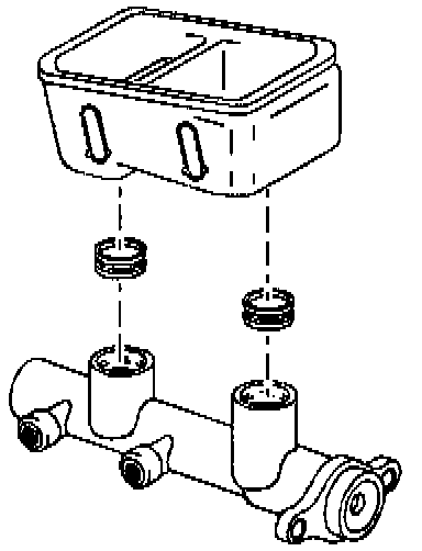 4. Remove the reservoir and two grommets from the master cylinder body.