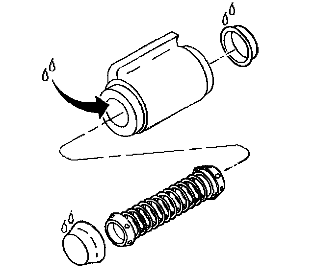 1. Lubricate the seals and the wheel cylinder bore with clean brake fluid.