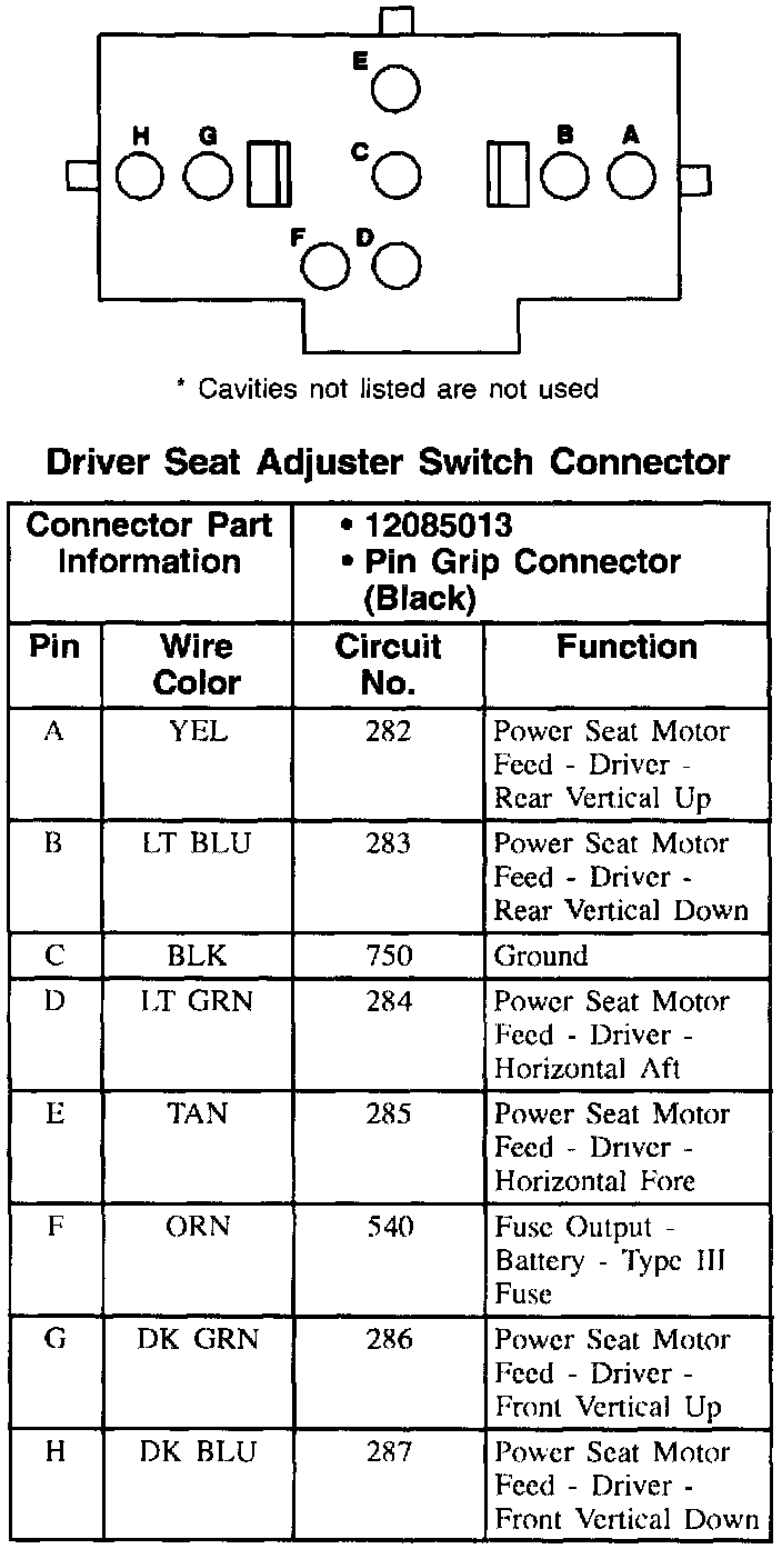 Driver Seat Adjuster Switch Connector: