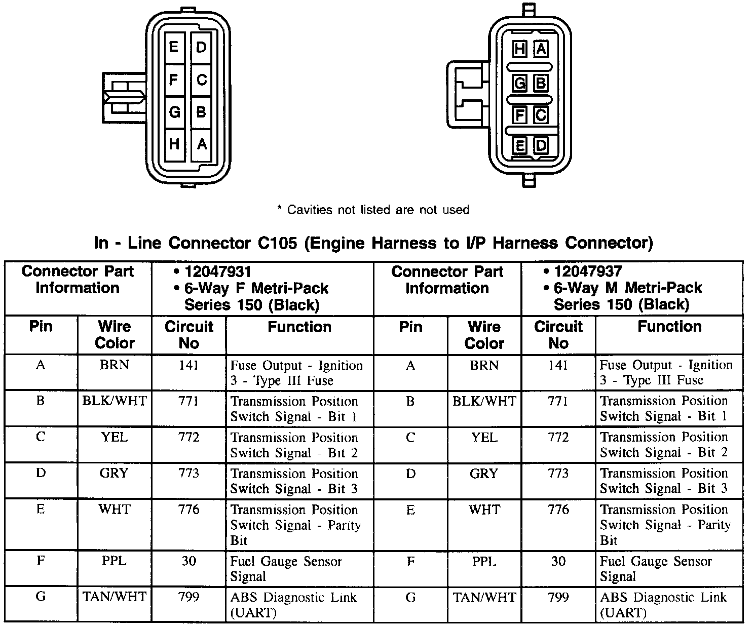 C105: Engine Harness To I/P Harness Connector: