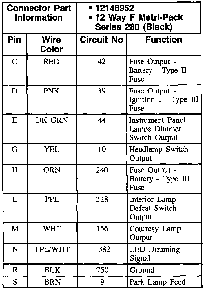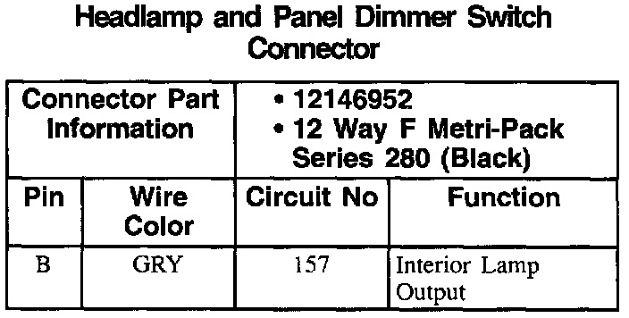 Headlamp And Panel Dimmer Switch Connector: