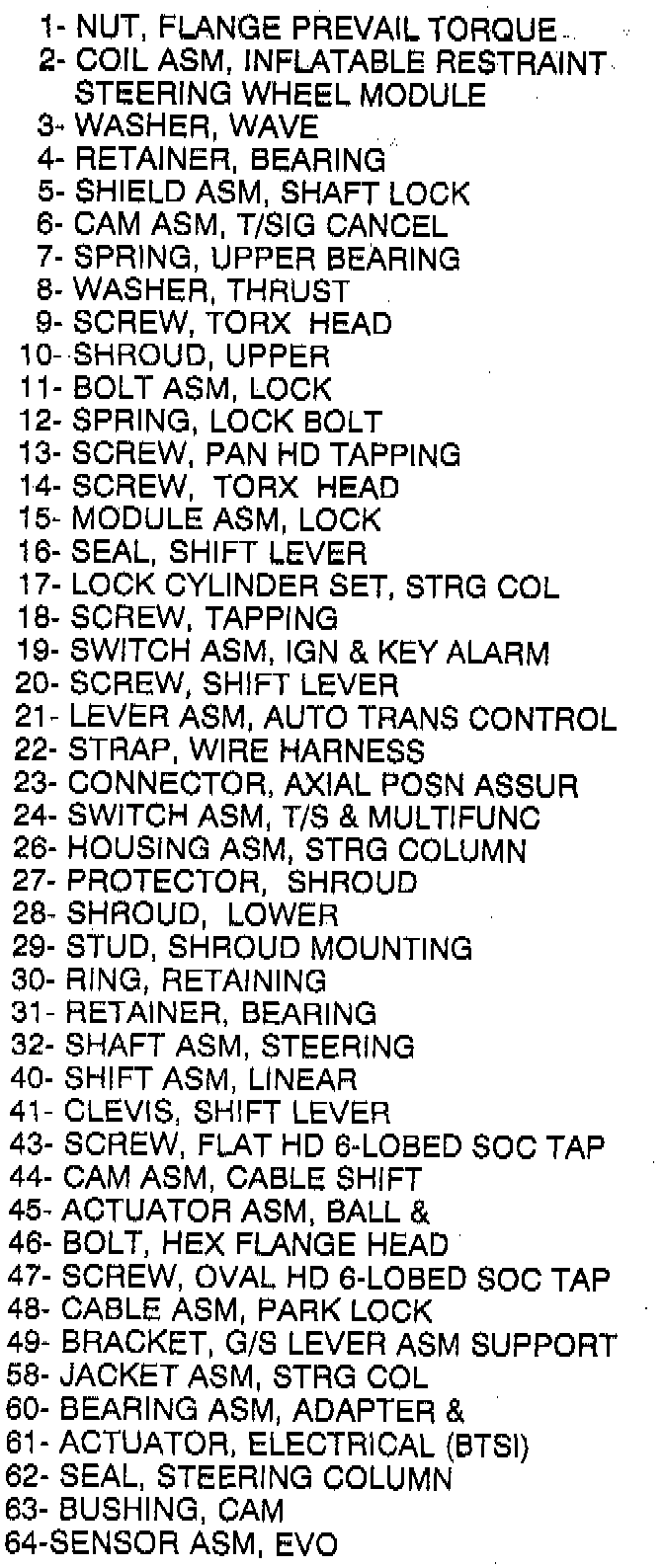 Standard Steering Column - Legend: