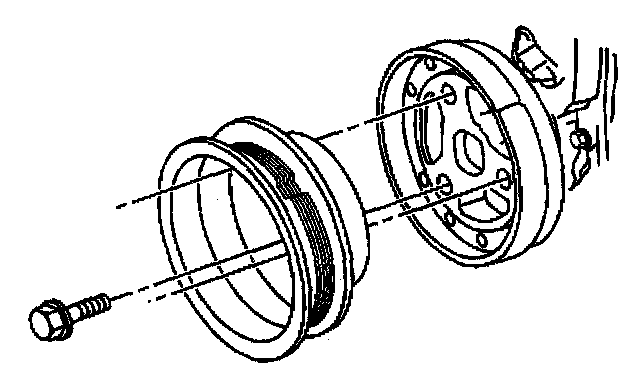 NOTICE: To prevent damage to the end of the crankshaft when using a crankshaft balancer removal tool install a bolt in the crankshaft. Use a shorter bolt with the same threads as the crankshaft balancer bolt. This bolt will allow a place for the tool to push against. The shorter bolt is to keep from going past the threads in the crankshaft and damaging the crankshaft threads.