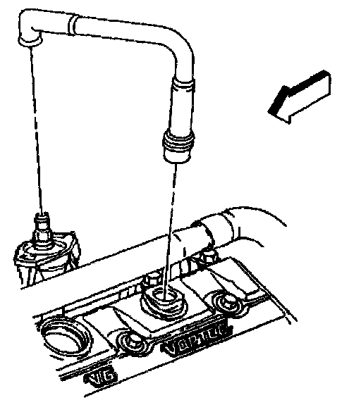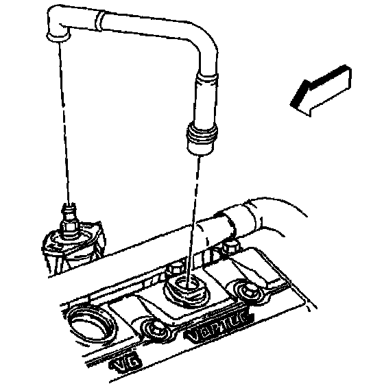 2. Install the PCV valve hose assembly to the intake manifold and in the valve rocker arm cover.
