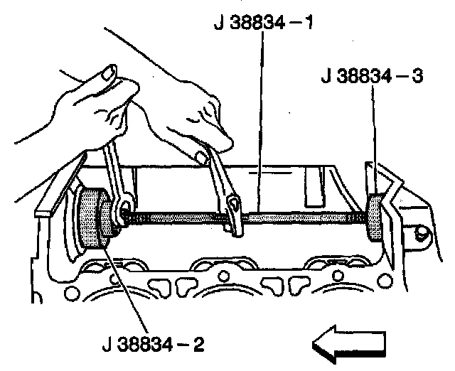 1. Use the J 38834 in order to install the balance shaft rear bearing.
