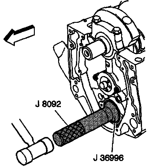 2. Use the J 36996 and the J 8092 in order to install the balance shaft.