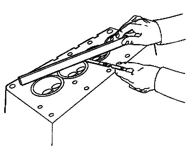 5. Measure the cylinder head for warpage with a straight edge and feeler gauge.