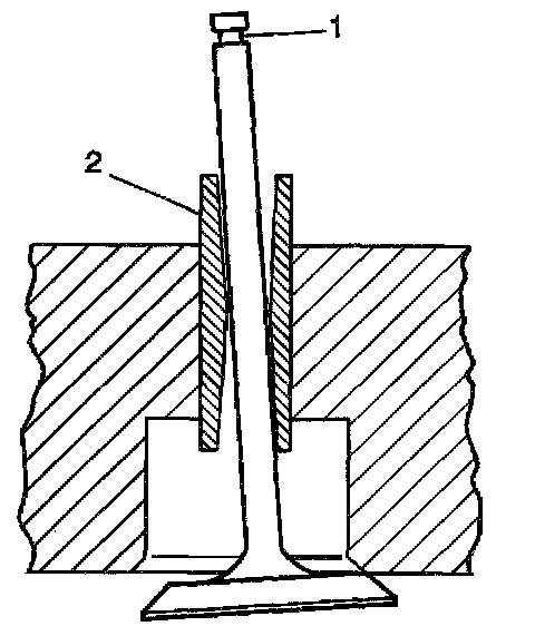 8. Valve stems (1) with excessive guide (2) clearance must be repaired or replaced.