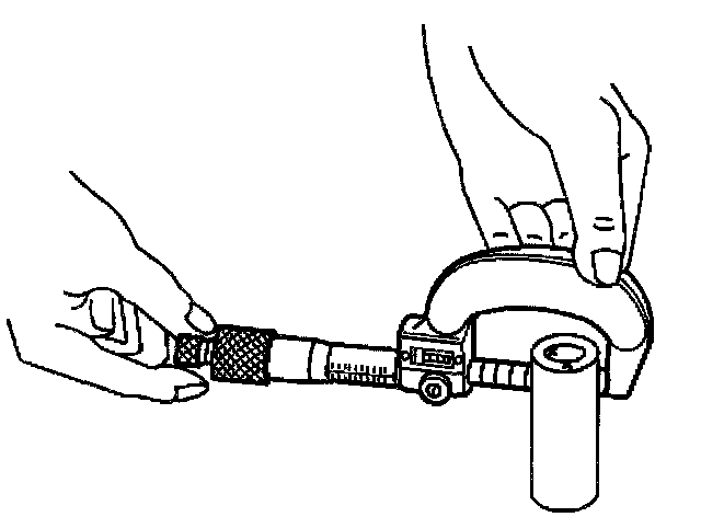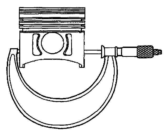 15.1. With a micrometer at a right angle to the piston, measure the piston at 11 mm (0.433 inch) from the bottom of the skirt.