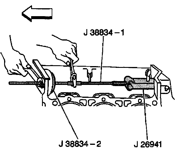 2.2. Install the J 38834-1 with the short threaded end through the front of the engine block.
