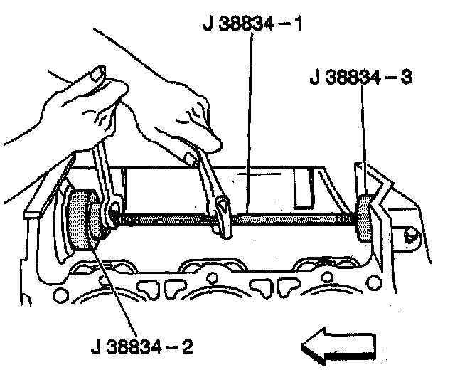 2.4. Install the J 38834-2 on the inside of the balance shaft front bearing bore.