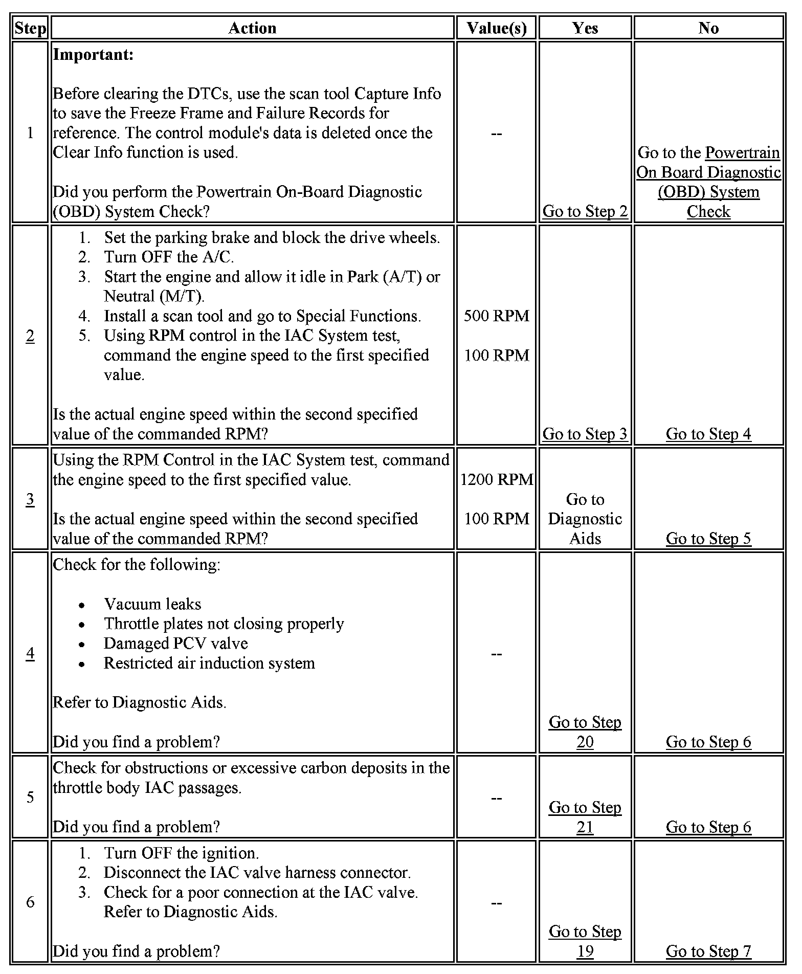 Number(s) below refer to step number(s) on the Diagnostic Table.