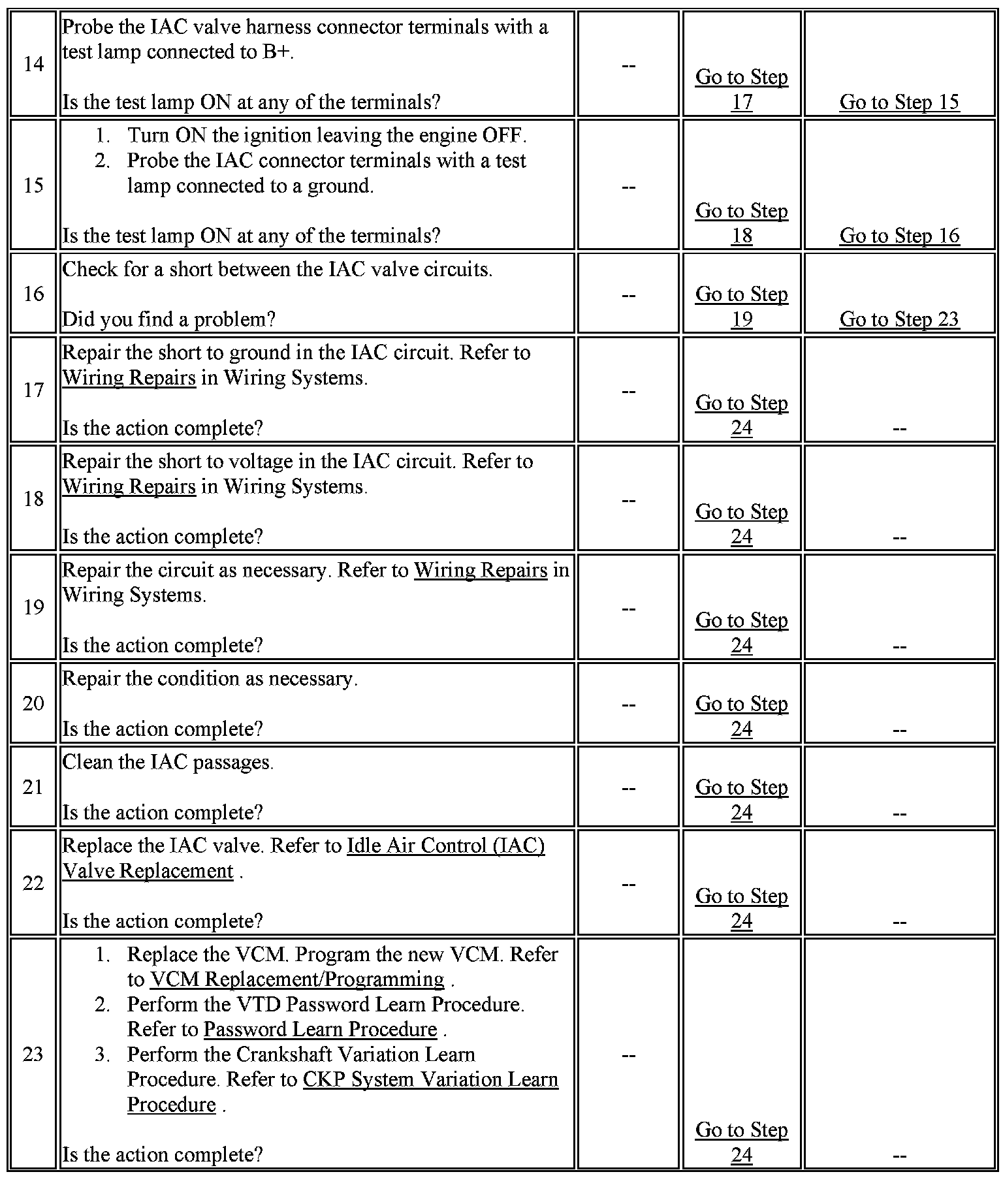 6. This step checks for the MIL control circuit for a short to B+ or a problem with the VCM.