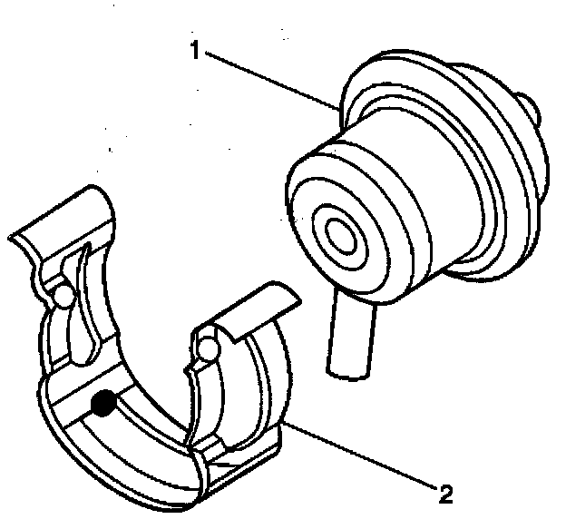 The fuel pressure regulator (1) is a diaphragm-operated cartridge relief valve with the fuel pump pressure on one side and the regulator spring pressure and intake manifold vacuum on the other. A retainer (2) holds the fuel pressure regulator.
