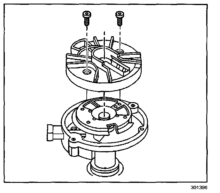 1. Line up the square-cut hole in the vane wheel for the camshaft position (CMP) sensor.