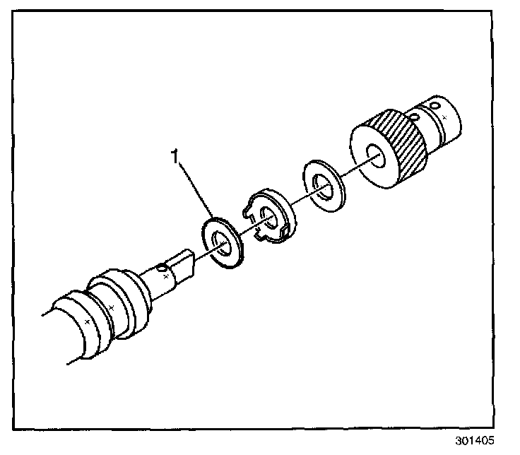19. Remove the round washer, if equipped (1), 7.4L engine only.