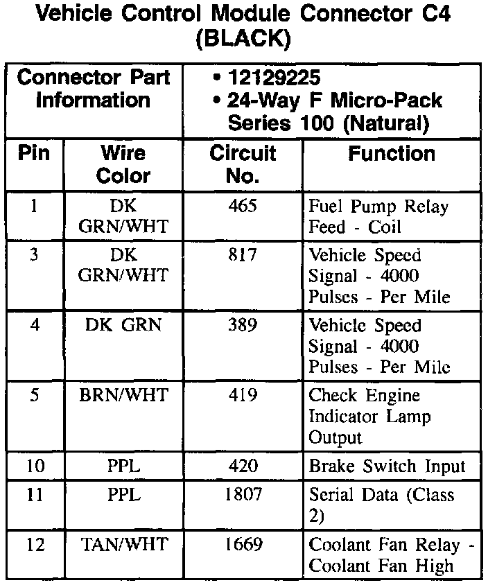 Vehicle Control Module Connector: C4 (Part 1 Of 2):