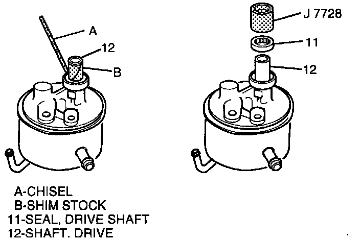 - Protect drive shaft (12) with shim stock.