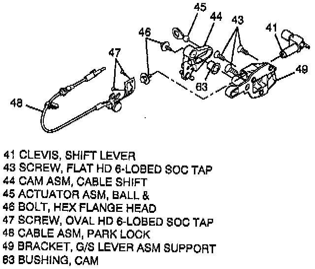 10. Shift lever clevis (41) and shift gate to support bracket (49).