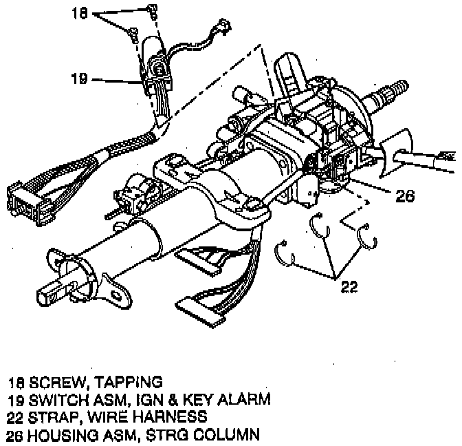 6. Two wire harness straps (22) from steering column wire harness.