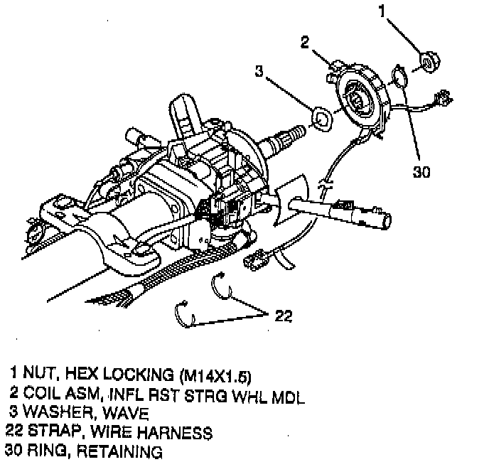 6. Two wire harness straps (22) to steering column wire harness.