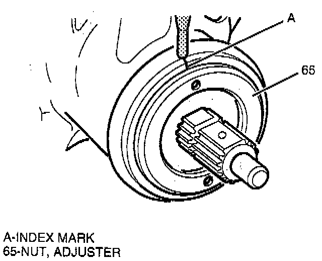 5. Place an index mark on housing (20) even with one of the holes in the adjuster nut (65).