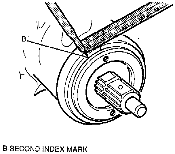 6. Measure back counterclockwise 13 mm (1/2 inch) and place a second mark on housing (20).