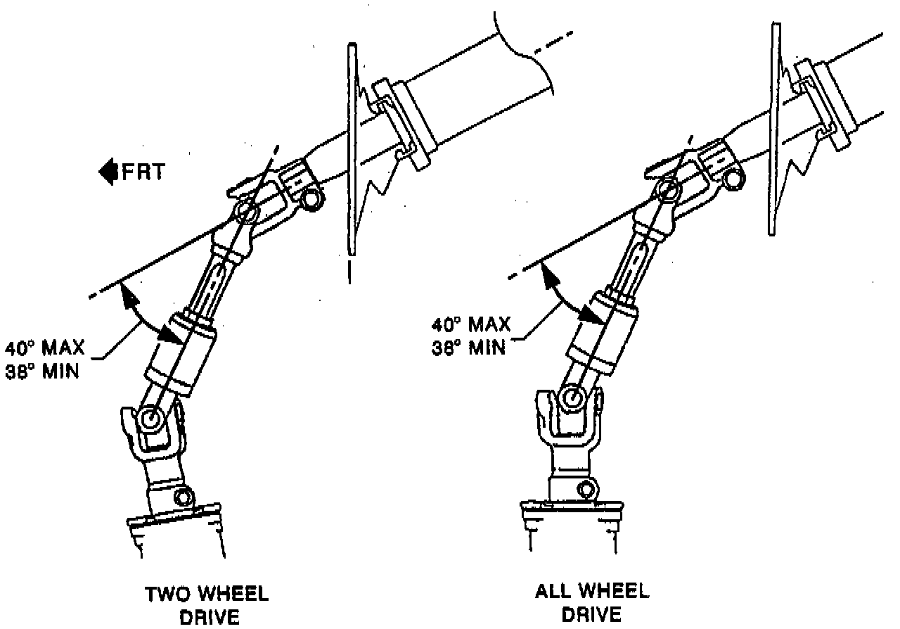 - Intermediate shaft angle. The angle must be 38 to 40 degrees.